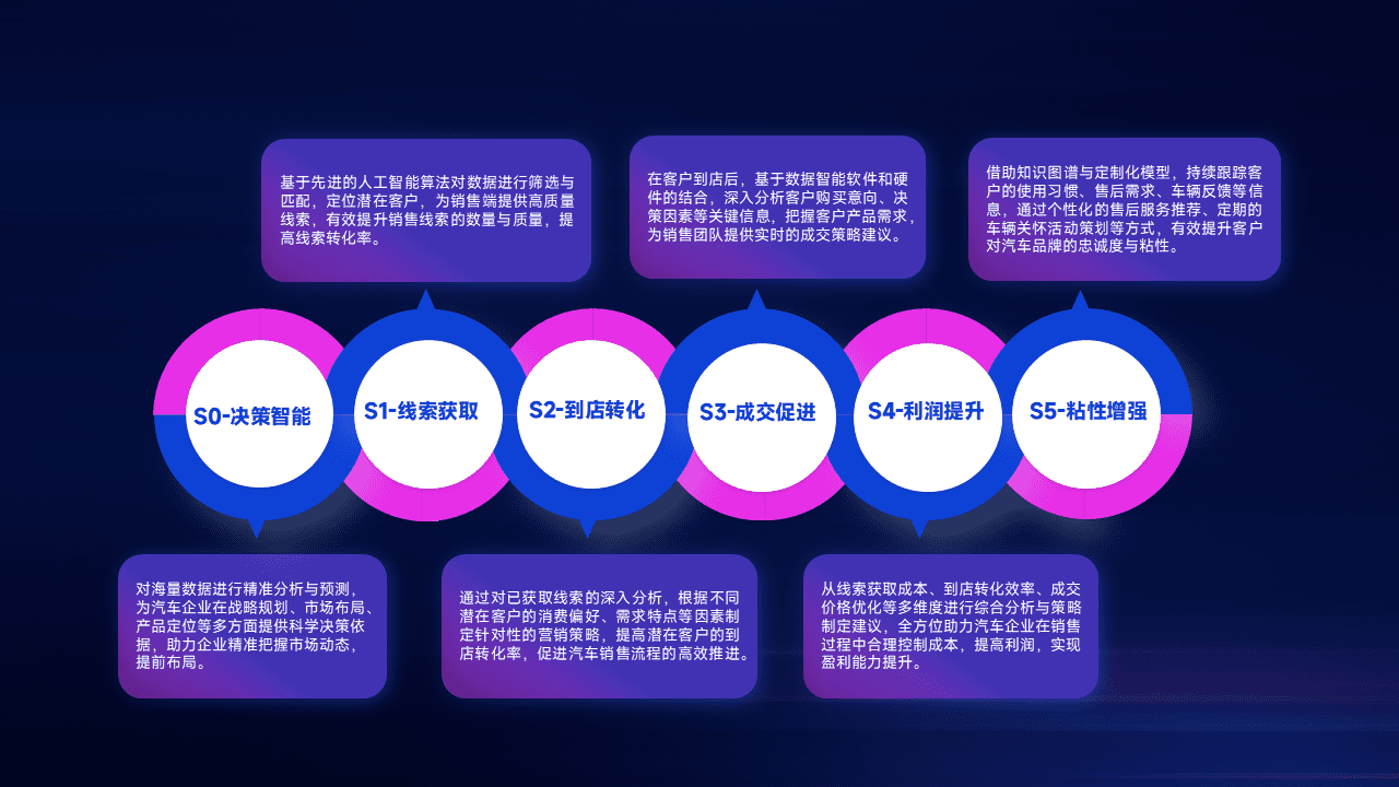 通过拓宽潜在客户来源、、、、优化线索分配并提高到店转化率,,,以增强销售效率。。。同时,,利用线索数据不断优化分析模型,,,有效提升转化率,,,,扩大营销影响力。。。。